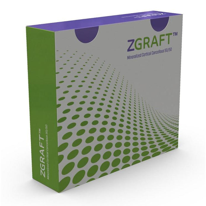 ZGRAFT™ Mineralized Cortical Cancellous Allograft Particulate blend provides a safe alternative to an autograft with no need for a second surgical site.  The Cortical Cancellous mixture offers the best of both cortical bone and cancellous bone by combining the two properties together.  The clinician has a longer lasting space maintenance with 50% cortical bone and faster remodeling with 50% cancellous bone.