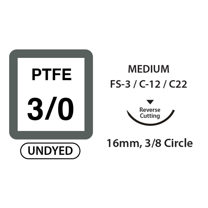 UNIFY PTFE Suture - 3/0 - 16mm 3/8 Circle R/C Needle - 18" White Thread - 12/Box